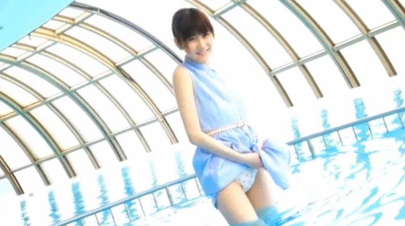 森田ワカナ スカートが濡れないようにたくし上げたらパンチラしてしまった美人アイドル